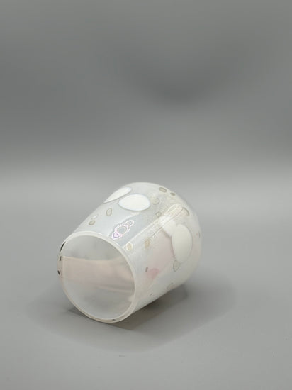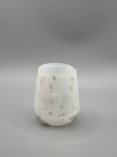 This listing is for an Hanoverian Tumbler that has some clear and has a tilted lip that isn't quite level but is a cute glass ready for any beverage.